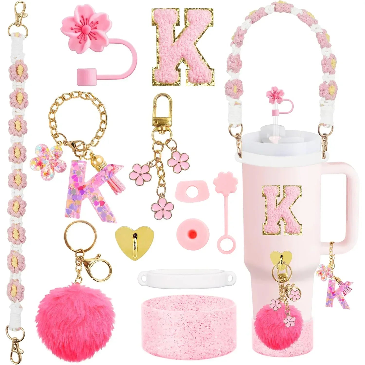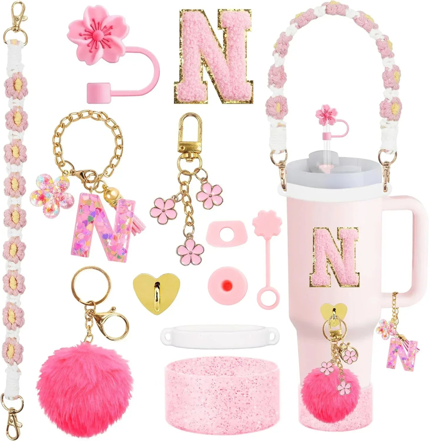 12PCS Cup Accessories for Stanley Cup 30oz 40oz Straw Cover Cap Water Bottle Handle Strap Boot Chains Personalized Sticker