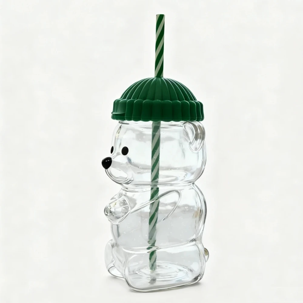 Coffee Cup Cute Little Bear Straw Plastic Water Cup Durable Coffee Wine Mike Beverage Cup for Birthday and Christmas Gifts